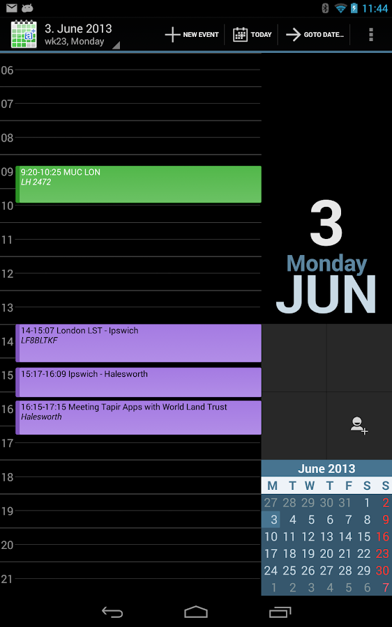 DescriptionaCalendar+ Android Calendar v0.16.5 Updated: January 7, 2014 What's New: v0.16.5: fixes for missing events in month view fix for wrong date when creating events v0.16.4: fix for week widget fix for wrong date on new event Description: aCalendar+ is the premium version of aCalendar. aCalendar+ gives you many additional calendar features. EXTRA FEATURES (aCalendar+ only) ● Agenda view ● scalable and scrollable agenda widget (Android 4, lockscreen-capable) ● Public holidays (add from calendar list) for AT,AU,BE,BR,CA,CH,CZ,DE,DK,ES,FI,FR,GR,HU,IE,IT,JP,LU,MX,NL,NZ,NO,PL,RU,SE,TR,UA,UK,US ● Link calendar events to contacts ● text and file sharing option ● More color themes (4 light + 4 dark themes, Android 4) ● Privacy and availibility settings ● Create new local calendars (Android 4) ● Manage attendees and invitations ● Drag'n'Drop in day view (Android 4, double-tap and hold) ● Samsung S Pen / Stylus Support (AirView & Navigation, no painting!) ● Autocomplete for inputs (location only so far) ● SMS and email reminders for Google Calendar (Android 4) FEATURES: ● intuitive navigation with smooth transitions ● day, week & month calendar ● Fullscreen widgets ● flexible recurrences like every 3 weeks, every 17 days, or every Mon, Wed and Fri ● 48 colors per calendar, 12 per-event colors if supported by the calendar (Android 4.1+ with Google Calendar only) ● custom event font size ● birthdays & anniversaries with photos from your addressbook and editing ● uses Android's native calendar backend and synchronization ● no battery drain through polling ● moon phases and zodiac signs for birthdays ● QR barcode sharing of events ● 12/24h clock honoring system settings ● optimized text display and improved line-break USAGE: ● move forward and backward in the calendar by swiping vertically or volume rocker ● switch between calendar views with a horizontal swipe (opens the day or week you start the swipe gesture on) or double-tap for day view ● tap to open a calendar event ● long-press to add new calendar event ● long-press on mini-month to go to today or jump to date ● tap on photo to open quick contact menu ● 3-finger-tap to go to today ● Drag'n'Drop: tap plus long press in day view (use volume rocker to change day) APP2SD: Unfortunately app2SD cannot be supported, because homescreen widgets do not work from SD. This is an Android limitation. But aCalendar+ is optimized not only for speed but also for a small memory footprint. BETA: aCalendar+ is still beta software. https://play.google.com/store/apps/details?id=org.withouthat.acalendarplus Requires Android 2.1 and up. ![]() Related Torrents