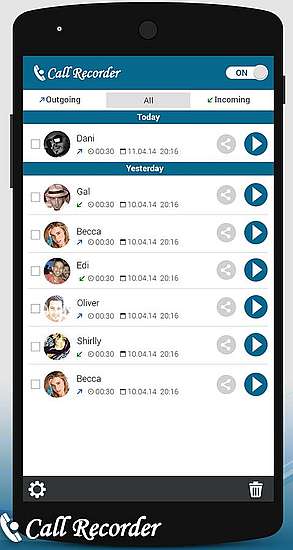 DescriptionAuto Call Recorder Premium v1.1.30 | 4,1 MB Requirements: 2.3 and up Auto call recorder allows you to record phone calls while on phone. This automatic Call Recorder is the best Telephone Recording app for android, Record any phone call you want, Choose which users or incomingoutgoing phone calls to record and choose which calls you want to save or share. Key Features: * Call Recorder automatic - record all your calls on auto-pilot. * Easily manage all your recordings. * Play back, or Share your phone recordings * Sort recordings by names or group by dates. This is a free AD supported version. What's New Bug fixes Info: premium feature unlocked Sharing Widget |
