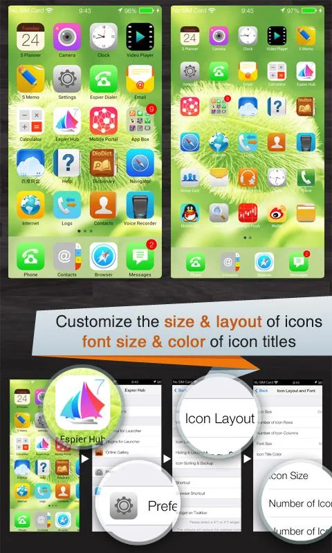 DescriptionEspier Launcher 7 Pro v1.2.8 Updated: December 23, 2013 What's New: Tune icons. Description: Espier Launcher 7 is the flat-style edition of the best and the most popular Apple style home screen app (Espier Launcher) for Android devices. In this edition, you can experience the perfect Android implementation of Apple's flat style font, layout, search page, and animations. Now, you can feel the simplicity on your Android devices! By using other Espier apps (Espier Screen Locker 7, Espier Notifications 7, and Espier Control Center 7; The Pro editions of these apps are also available on Google Play), your Android device will get a complete makeover. The Pro edition is only for users of Google Play. With this edition, we tried to provide you with a pure home screen app. All features are enabled and without any extra charges. NOTE THAT IN ORDER TO RESPECT DMCA (DIGITAL MILLENNIUM COPYRIGHT ACT) AND APPLE'S WORK, WE CAN NOT USE THE ICON DESIGNS FROM APPLE'S IOS IN THIS APP. YOU CAN SEARCH THE ICONS ON INTERNET TO REPLACE THEM BY YOURSELF. YOU CAN ALSO VISIT THE DEVELOPER'S WEBSITE TO FIND VARIOUS THEMES TO MEET YOUR PERSONALITY. Note: Apple, iPhone, iPad are registered trademarks of Apple Inc. in the U.S. and other countries and regions around the world. Note: iOS is a registered trademark of Cisco Technology, Inc. in the U.S. and other countries and regions around the world. MAIN FEATURES ============= 1. Flat-style - It brings clarity to the entire experience: * Perfect implementation of Apple flat style home screen effects and functions. * Prefect Apple flat style animations. * Dynamic clock and calendar icons. * Dynamic color of the titles and the indicators based on the shade of wallpaper. 2. A perfect combination of beautiful flat style and the modern Android features: * Flawless widget support; You can have multiple widget pages (up to eight). * Complete shortcuts management. 3. Dozens switches or options, which help the launcher matches your Android device perfectly: * Use widget pages or not. * Show all widgets in one widget page or use multiple widget pages. * Show widget pages along with icon pages or show the widget pages separately. * Powerful customization of icon layout; You can customize the icon size, icon layout (columns and rows), the size of icon title, and the color of the title. 4. Unique multi-language support; Dozens languages supported, and more and more. 5. App Box folder reminds you the update of your apps in time. 6. Other features or enhancements: * Design icon by yourself; you can apply one design to a specific category of icons, not only one icon. * Hide and/or lock icons. * Dozens of themes (more and more) available to change your icon style. * Dozens of plugins (more and more) available to extend the functions; Badge icons if you use Espier Notifications plugin. * You can get your favorite wallpapers and icons from Online Gallery easily. https://play.google.com/store/apps/details?id=mobi.espier.launchergpro Requires Android 2.2 and up. ![]() Sharing Widget |