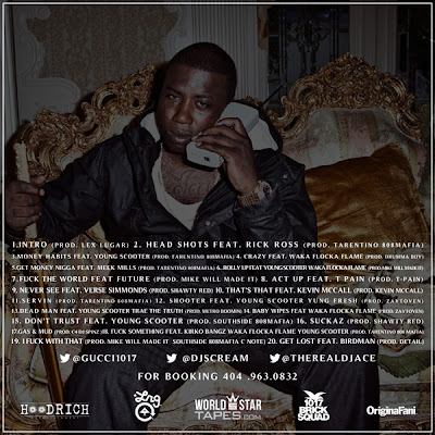 Description![]() ![]() 1.Intro produced by Lex Luger 2.Head Shots feat Rick Ross produced by Tarentino, 808mafia 3.Money Habits feat Young Scooter produced by 808mafia 4.Crazy feat Waka Flocka Flame produced by Drumma Boy 5.Get Money N a feat Meek Mill produced by 808 mafia 6.Rolly Up feat Young Scooter, Waka Flocka Flame produced by Mike Will Made It 7.Fawk The World feat Future produced by Mike Will Made It 8.Act Up feat T-Pain. produced by Tpain 9.Never See feat Verse Simmonds produced by Shawty Red 10.That's That feat Kevin McCall produced by Kevin McCall 11.Servin produced by 808 Mafia 12.Shooter feat Young Scooter, Yung Fresh produced by Zaytoven 13.Dead Man feat Young Scooter, Trae The Truth produced by Metro Beats 14.Baby Wipes feat Waka Flocka Flame produced by Zaytoven 15.Don't Trust feat Young Scooter 16.Suckaz produced by Shawty Redd 17.Gas and Mud produced by C4 18.Fawk Something feat Kirko Bangz, Waka Flocka Flame, Young Scooter produced by 808Mafia 19.I Fawk With That produced by Mike Will Made It, Southside, CNote 20.Get Lost feat Birdman produced by Detail Mixtapesdaily.net Twitter @Mixtapes_Daily Sharing Widget |