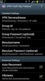 DescriptionPlayStore Description Features: * Profile automatically taken from the Trial version (don't uninstall the Trial until the first run of this full version) * No root access needed (if the device fully conforms to Android 4) * Compatible with Fritzbox, Cisco PIX/ASA, Fortigate VPN Servers and others (?) * Connects/Disconnects with a single click (by a Shortcut-Widget) * Automatic Reconnect Mode on WiFi/Mobile failover/outage * Supports Multiple Profiles * Supports automatic Cisco Split Routing * Passwords may be stored in profile or always manually entered when connecting (which is much more safe) Advanced Settings: * Possibility to specify WiFi Blacklists/Whitelists to explicitely deny/allow VPN on only specific WiFi ESSDs * Possiblity to specify Manual Routes and/or DNS Server and much more... Screen Shot's Brought to You By AppStore Never Fear to Seed,Vote and Comment Sharing Widget |